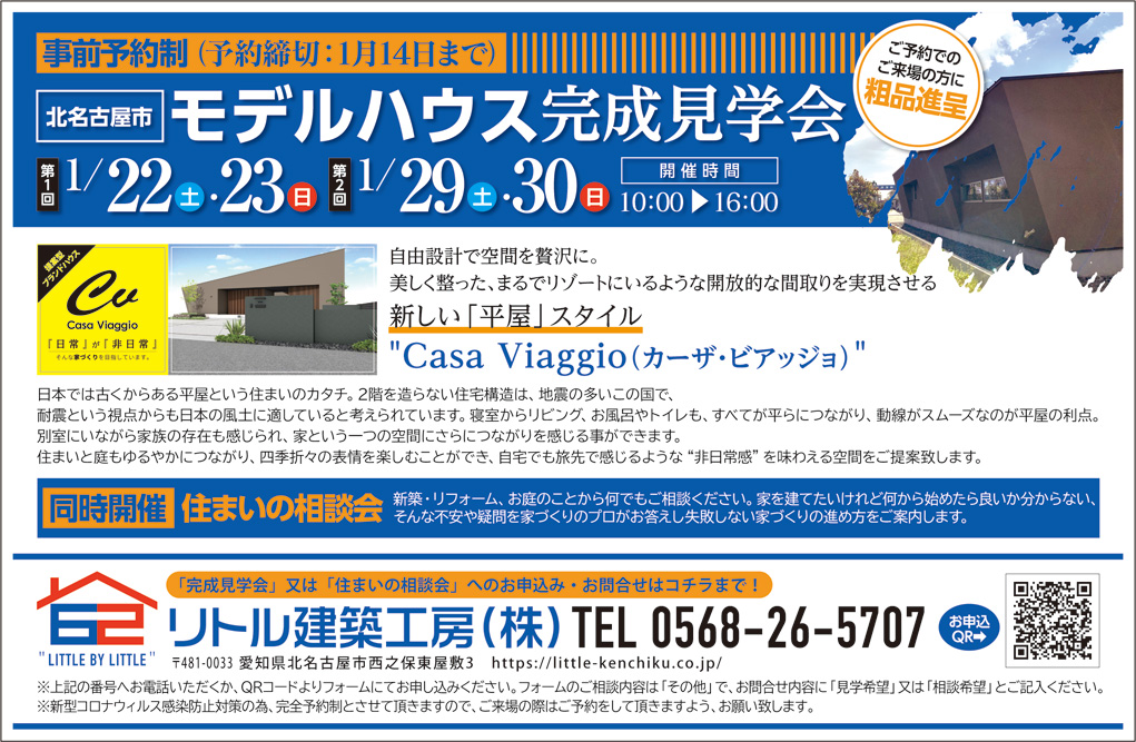 TEL 0568-26-5707同時開催:住まいの相談会新築・リフォーム、お庭のことから何でもご相談ください。家を建てたいけれど何から始めたら良いか分からない、そんな不安や疑問を家づくりのプロがお答えし失敗しない家づくりの進め方をご案内します。