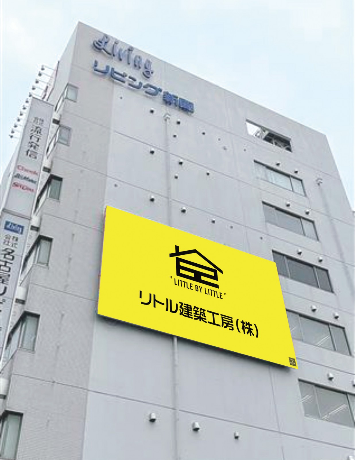 名古屋市中区新栄流行発信ビルの壁面に取り付けられた大型ビジョンにて